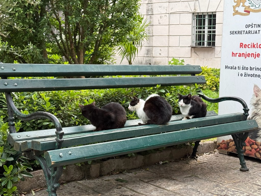 Kotor is known as the city of cats. That’s right, cats!! They are all over and especially like to hang out in Kotor’s old town. In fact, there is even a park dedicated to meowsters where there is a machine that dispenses cat food when folks recycle bottles into it. Please enjoy the next group of photos.
